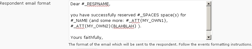 This is in fact less complicated than it sounds. Just define your own attributes in any of the available text fields, eg. in the field “Respondent email format” use the placeholder "#_ATT{MY_OWN_ATTRIBUTE}". After this, when editing an event or location, "MY_OWN_ATTRIBUTE" will show up as a possible attribute for which you can set a value.